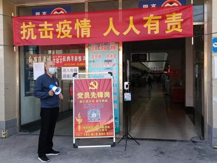為確保鳳凰山路壹號商城疫情防控工作落細落實,新匯成公司采取以黨員帶群眾的形式,動員全體職工參與疫情防控。五一節(jié)假日期間,全體職工堅守崗位,嚴格執(zhí)行“雙檢一測一登記”流程,對進場的所有人員進行“雙碼”查驗、測量體溫并進行追本溯源信息登記,每日對進出場的200余輛車輛進行消毒。